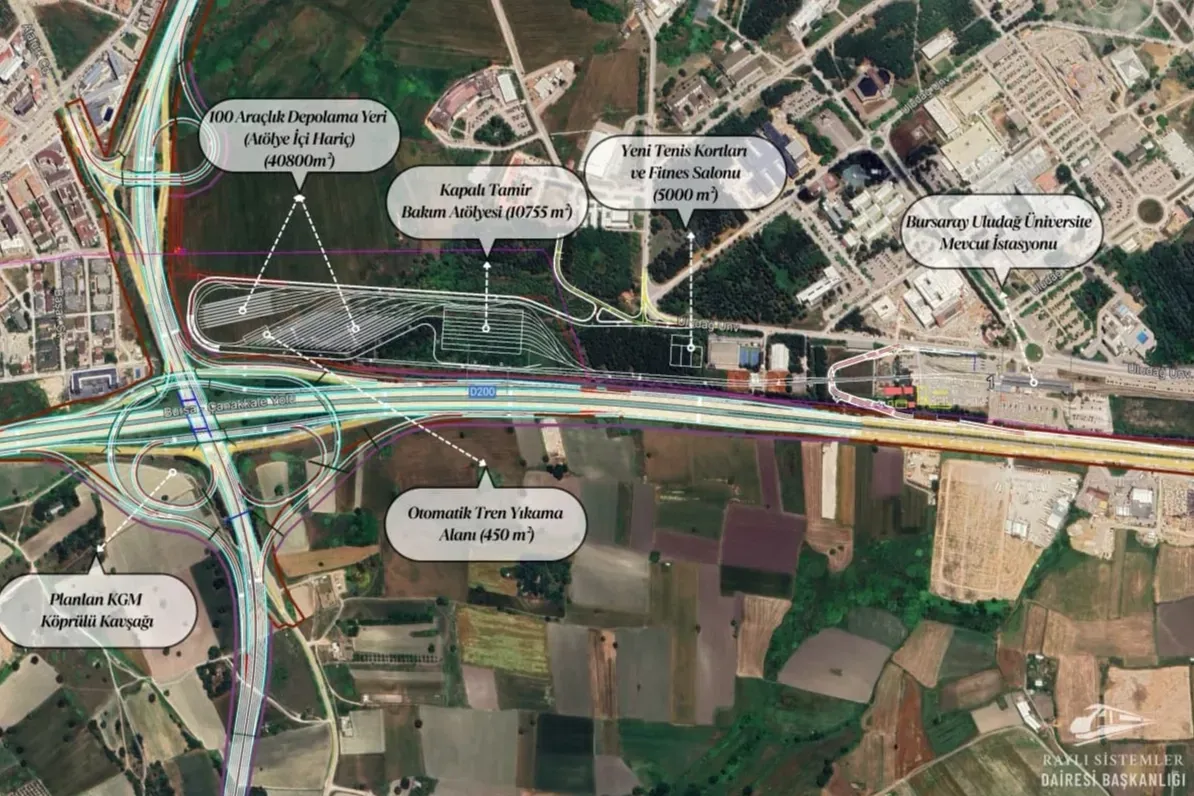 BURSA (İGFA) - Çalışmalar kapsamında yapılacak 1,2 kilometrelik Görükle uzatması ile birlikte Depo Sahası Ulaşım Hattı, 22 araçlık parklanma hattı, idari binalar, araç ve hat bakım atölyesi ile araç yıkama hattı ünitesi gibi tesislerin inşası da planlandı. Tesisler, tüm raylı sistem araçlarının bakım, onarım ve işletme süreçlerini bütüncül biçimde yürütecek altyapıyı oluşturacak.