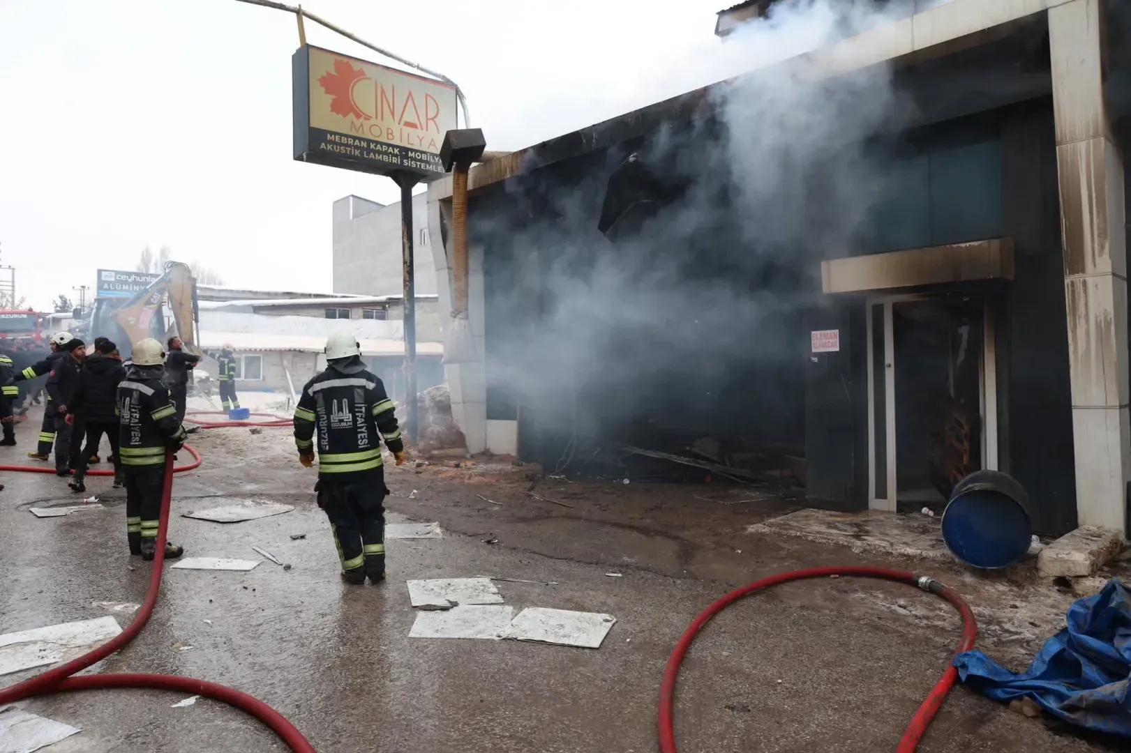 ERZURUM (İGFA) - Henüz belirlenemeyen bir nedenle çıkan yangın kısa sürede büyüyerek çevredeki iş yerlerine yayıldı. Vatandaşların ihbarı üzerine bölgeye çok sayıda itfaiye, sağlık ve polis ekibi sevk edildi. Söndürme çalışmalarına Toplumsal Olaylara Müdahale Aracı (TOMA) da destek verdi.