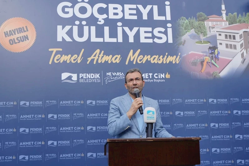 Temel atma töreninde konuşan Belediye Başkanı Ahmet Cin: “Güzel bir hayırlı hizmette sizlerle beraberiz. Bu tür manevi yatırımlar hakikaten Pendik’te artık çok ciddi manada artarak devam ediyor. Şu anda Pendik’te manevi yatırım anlamında 55 tane şantiye devam ediyor. Cami inşaatı, 4-6 yaş Kuran kursu, kız Kuran kursu, lojman, ek bina gibi birçok hizmet şu anda Pendik’te yükseliyor. Güzel bir eseri inşallah Göçbeyli’ye kazandırmış olacağız. Daha önce bütün köy konaklarımızı bitirmiştik. Burada da köy konağımızı ve bu hizmetimizi yapmış olacağız. Ayrıca bu bittikten sonra inşallah büyük camiyi ve oradaki binaları da elden geçireceğiz, revize edeceğiz. Orayı da inşallah yapmış olacağız ve hayırlı bir hizmeti tekrar sizlere kazandırmış olacağız.” ifadelerini kullandı.