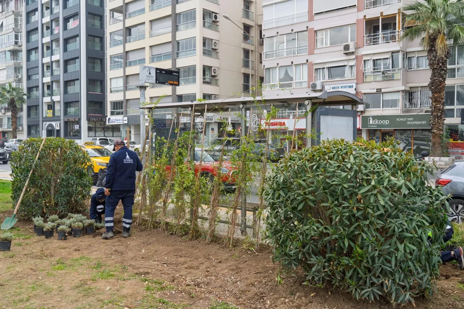 İzmir Büyükşehir Belediyesi Park ve Bahçeler Dairesi Başkanlığı, kent merkezinde hizmet veren ESHOT otobüs duraklarının üstünde ve çevresinde peyzaj çalışmaları başlattı. İklim krizine duyarlı, az su tüketen kurakçıl bitkilerle gerçekleştirilen peyzaj çalışmaları kapsamında durak çevreleri yeşil bir görünüme kavuşturuluyor. Durakların zemininden tavanına kadar sarıcı bitkilere yer veriliyor. İlk etapta 21 durak için belirlenen yeşil dönüşüm çalışmalarının, ilerleyen süreçte İzmir geneline yayılması hedefleniyor. Peyzaj çalışmaları tamamlanan otobüs durakları, hem kent estetiğine değer katıyor hem de durak çevresini daha temiz bir görünüme kavuşturuyor.