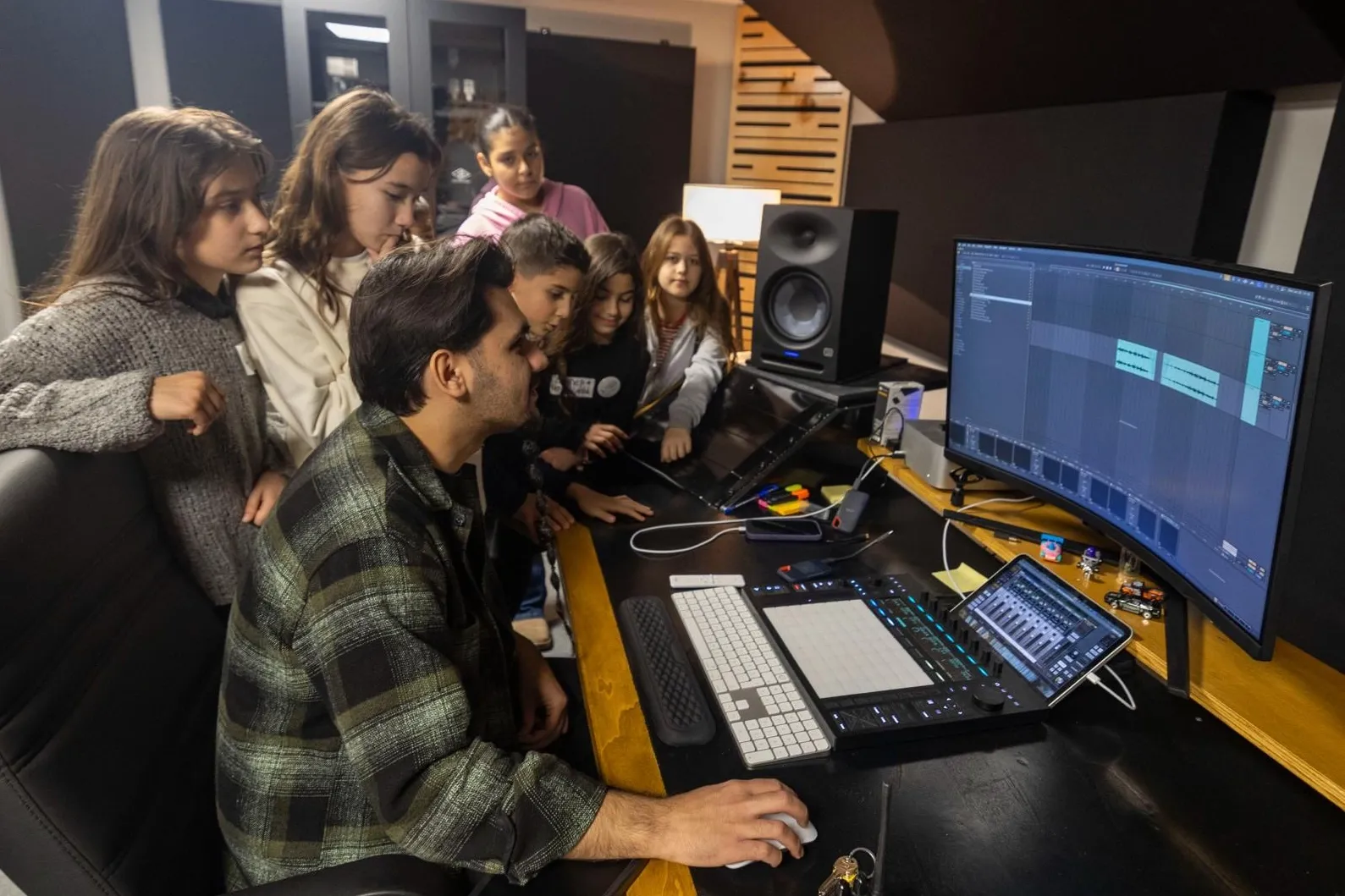 İzmir Çocuk Meclisi üyeleri, yarıyıl tatilinde kentin farklı noktalarında yer alan İzmir Büyükşehir Belediyesi birimlerini gezerek hem bilgi ediniyor hem de keyifli vakit geçiriyor. Genç müzisyenler için açılan ücretsiz müzik stüdyosu uygulaması Stüdyo Kültürpark’ı da ziyaret eden meclis üyeleri, hayatlarında ilk kez podcast kaydı yapma deneyimi yaşadı.