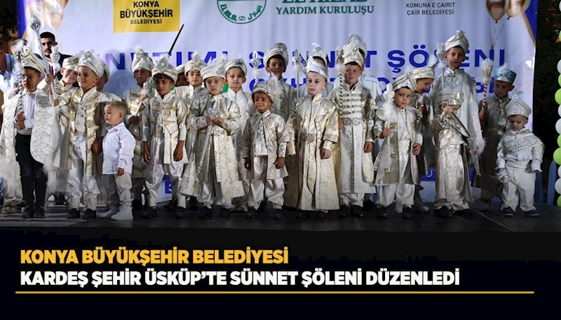 Konya Büyükşehir Belediyesi, Üsküp Belediyesi ve El-Hilal Yardımlaşma Kuruluşu ile birlikte yetim ve ihtiyaç sahibi çocuklar için toplu sünnet şöleni gerçekleştirdi.