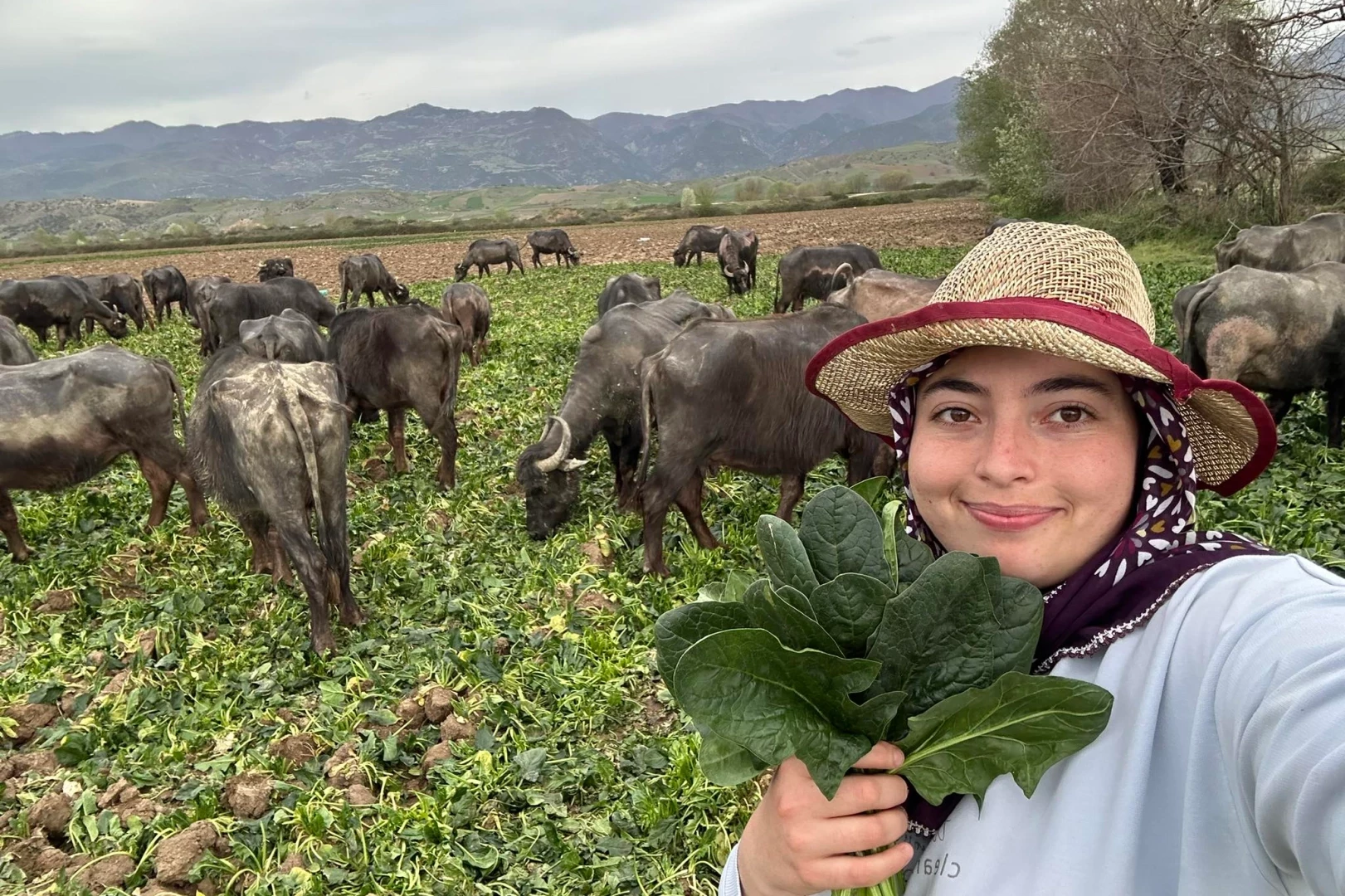 Tokat’ın Erbaa ilçesinde 25 yaşındaki Melike Çakır, mandalarla kurduğu sevgi dolu bağı sosyal medyada paylaşarak hem bölgesel tarıma katkı sağlıyor hem de kadınlara ilham oluyor.