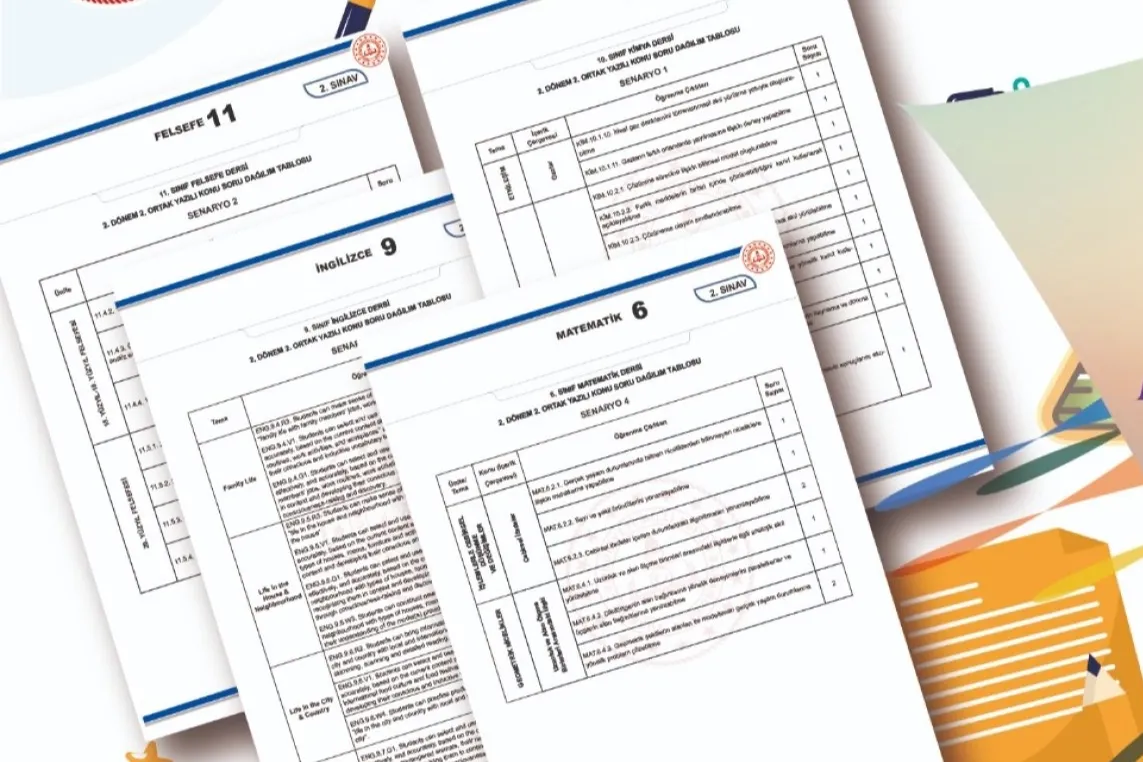 İkinci dönem ortak yazılı sınavlara yönelik örnek konu-soru dağılım tablolarına ulaşmak için tıklayabilirsiniz.
