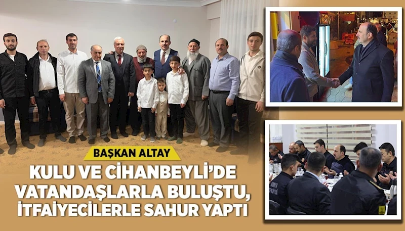 Daha sonra Cihanbeyli’ye geçen Başkan Altay AK Parti Cihanbeyli İlçe Başkanı Veysel Akbulut ile birlikte Merkez Camii’nde teravih namazı sonrası vatandaşlarla selamlaştı. Son olarak AK Parti Cihanbeyli İlçe Teşkilatı’nı da ziyaret eden Başkan Altay, partililerle istişarelerde bulundu.