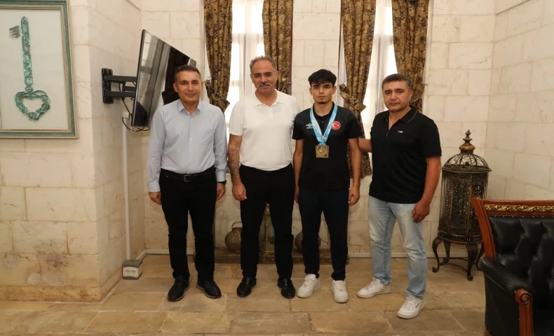 Eyyübiye Belediye Belediyesi AK Evler Spor Salonları’nda yetişerek, karate spor dalında ülkemizin gururu haline gelen Savaş Öğüş, Muş’ta düzenlenen şampiyonada da iki altın madalya kazanarak Türkiye şampiyonu oldu. Memleketi Şanlıurfa’ya dönen şampiyon, Eyyübiye Belediye Başkanı Mehmet Kuş’u ziyaret ederek madalyalarını takdim etti.