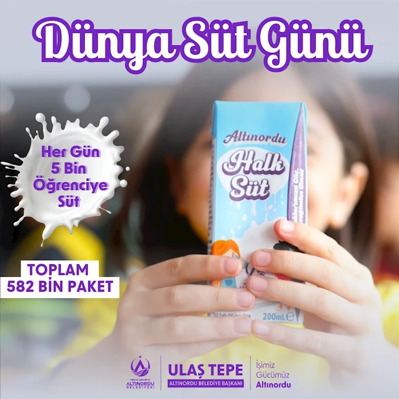 Altınordu Belediye Başkanı Ulaş Tepe, 1 Haziran Dünya Süt Günü dolayısıyla yaptığı açıklamada, “Halk Süt uygulamamızla okul öncesi ve ilkokul çağındaki 5 bin 24 öğrencimize bugüne kadar 582 bin 809 paket süt dağıtımı gerçekleştirdik. Önümüzdeki yıl öğrenci sayımızı 10 bine çıkartarak, küçük yaştaki bütün öğrenci kardeşimizi sütle buluşturacağız” dedi.