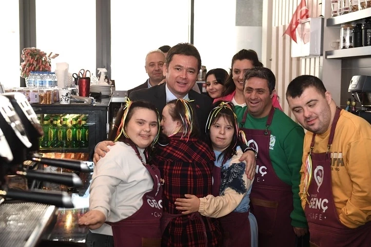 Bursa Osmangazi Belediye Başkanı Erkan Aydın, 21 Mart Dünya Down Sendromu Farkındalık Günü’nde engelli bireylerle beraber Genç Kafe’de çalışarak farkındalık oluşturdu.