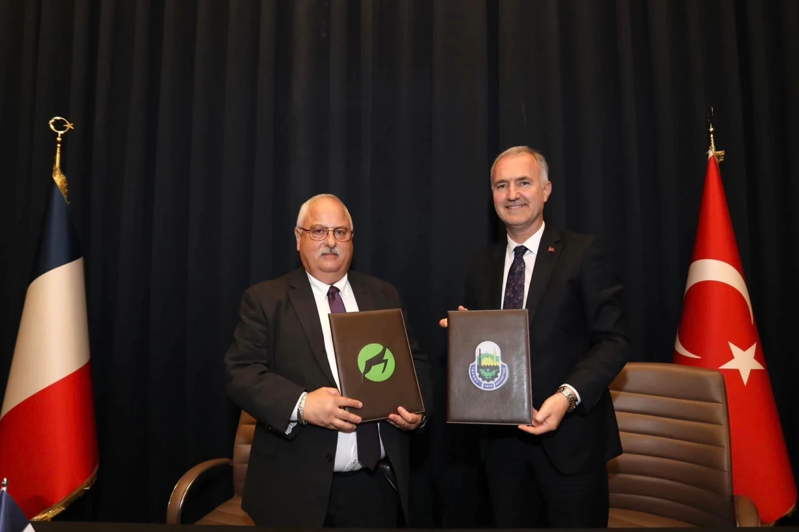 BURSA (İGFA) - İnegöl Belediyesi’nin 2014 yılında dostluk ve kültürel iş birliği anlaşması imzaladığı Fransa’nın Bordeaux şehrine bağlı Cenon Belediyesi ile kardeş şehir protokolü imzalanması, Eylül ayında İnegöl Belediye Meclisinde görüşülerek oy birliği ile kabul edilmişti. Bu gelişme üzerine Cenon kentinden Belediye Başkanı Jean Farnçois Egron ile birlikte Başkan Yardımcıları ve belediye bürokratlarının yer aldığı heyet İnegöl’e geldi. Cenon Belediye Başkanı Jean Farnçois Egron ve İnegöl Belediye Başkanı Alper Taban, dün yapılan İnegöl Belediye Meclis Toplantısının ardından meclis huzurunda kardeş şehir protokolünü imzaladı. Bu imzayla beraber Cenon kenti, Donji Vakuf, Dunaujvaros, Mitroviça, Rustavi, Novi Pazar ve Tahtamukay’ın ardından İnegöl’ün 7’nci kardeş şehri oldu.