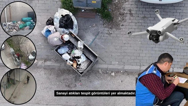 Çevre Timi drone ile tespit çalışmalarında özellikle sanayi bölgelerinde endüstriyel atıkların çevreye gelişi güzel atılması ya da bu atıkların yakılarak hava kirliliğine sebep olunması gibi olumsuzlukların tespitlerini gerçekleştiriyor. Bunun beraberinde evsel konteyner içerisinde atılması yasak olan endüstriyel atıkların tespitleri de yapılırken şehir genelinde çarşı merkezi gibi işyeri yoğun bölgelerde işyeri önü temizlik denetimleri ile cadde ve sokaklarda araçlardan seyir halinde atılan çöplerle ilgili denetim ve tespitlere hız kesmeden devam ediyor.