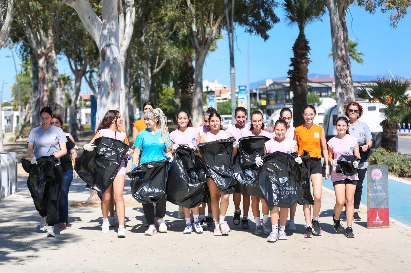İzmir Narlıdere Belediyespor Kız Voleybol Takımı sporcuları, “temiz bir çevre, sağlıklı bir gelecek” sloganıyla Narlıdere sahilinde kıyı temizliği yaptı