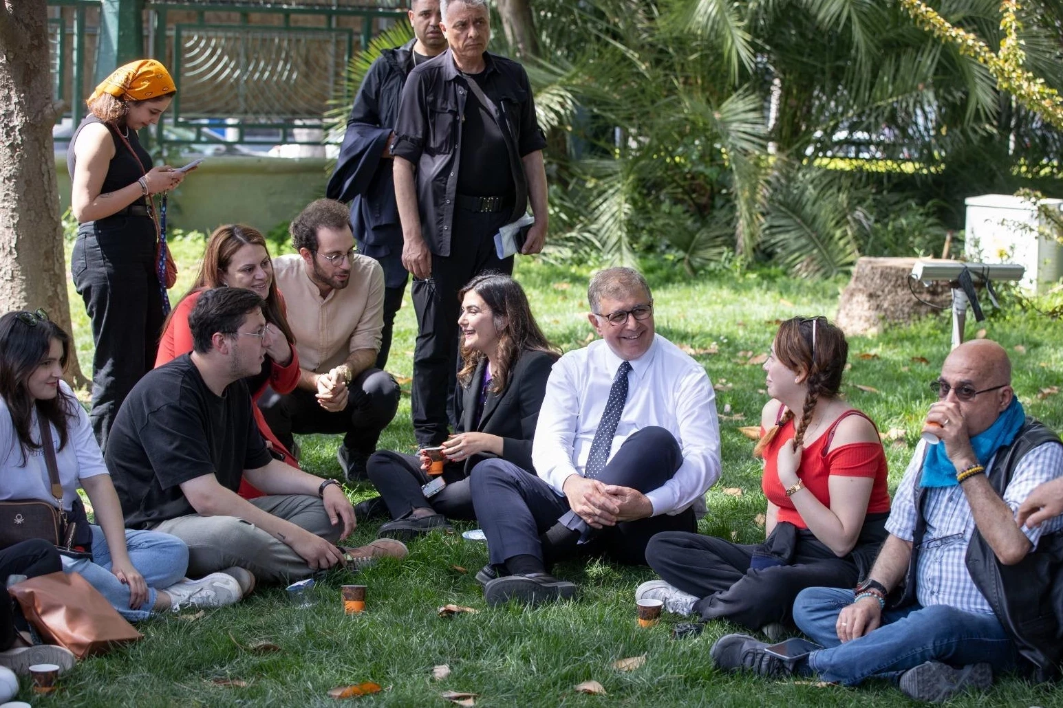 İzmir Büyükşehir Belediye Başkanı Dr. Cemil Tugay, tutuklanan arkadaşları için dayanışma çağrısı yapan gençlerle Kültürpark'ta bir araya geldi. Başkan Tugay, "Bu ülke, düşünen ve düşüncelerini ifade eden gençlerimizle daha iyi yarınlara ulaşacak" dedi.
