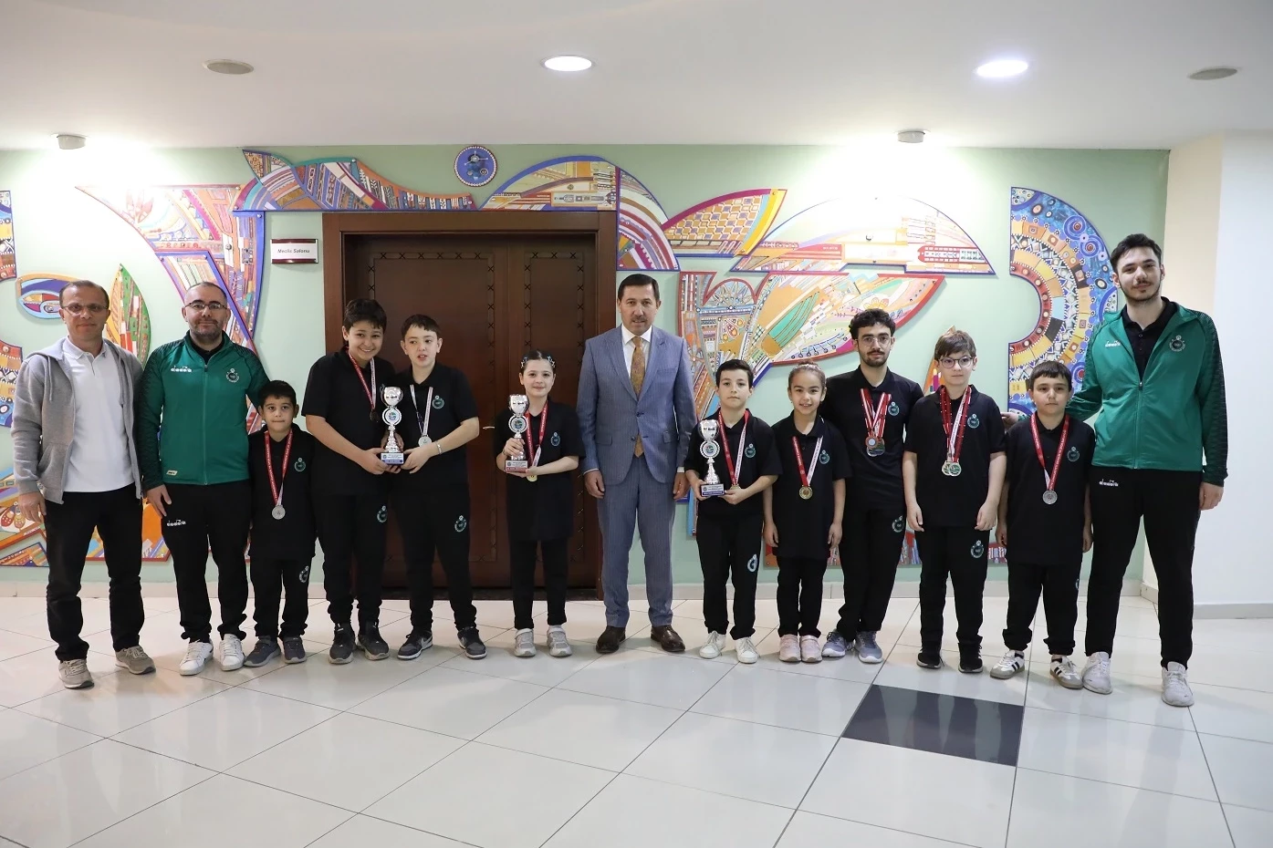 Ziyaret sırasında sporcular ve antrenörler, hem bireysel hem de takım olarak kazandıkları kupaları Karatay Belediye Başkanı Hasan Kılca’ya takdim etti. Başkan Kılca, sporcuları tek tek tebrik ederek, verdikleri emeklerden dolayı antrenörlere de teşekkür etti.