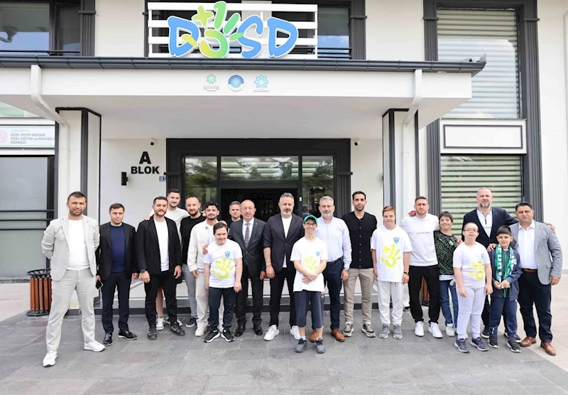 Konyaspor Başkanı Ömer Korkmaz, kulüp yöneticileri ve Tümosan Konyasporlu futbolcular Melih İbrahimoğlu, Deniz Ertaş, Uğurcan Yazgılı ve Melih Bostan, Meram Belediyesi öncülüğünde hayata geçirilen Down Sendromlu Bireyler Yaşam Destek Merkezi DOSD Meram’ı ziyaret ederek down sendromlu özel çocuklara unutulmaz bir gün yaşattılar. Meram Belediye Başkanı Mustafa Kavuş ve DOSD Meram Dernek Başkanı Mehmet Munlafalıoğlu da ziyaretlerinde Konyasporlu yönetici ve futbolculara eşlik etti. Başkan Kavuş ve Munlafalıoğlu, misafirlere merkezi gezdirerek, çalışmalar hakkında bilgi verdiler.