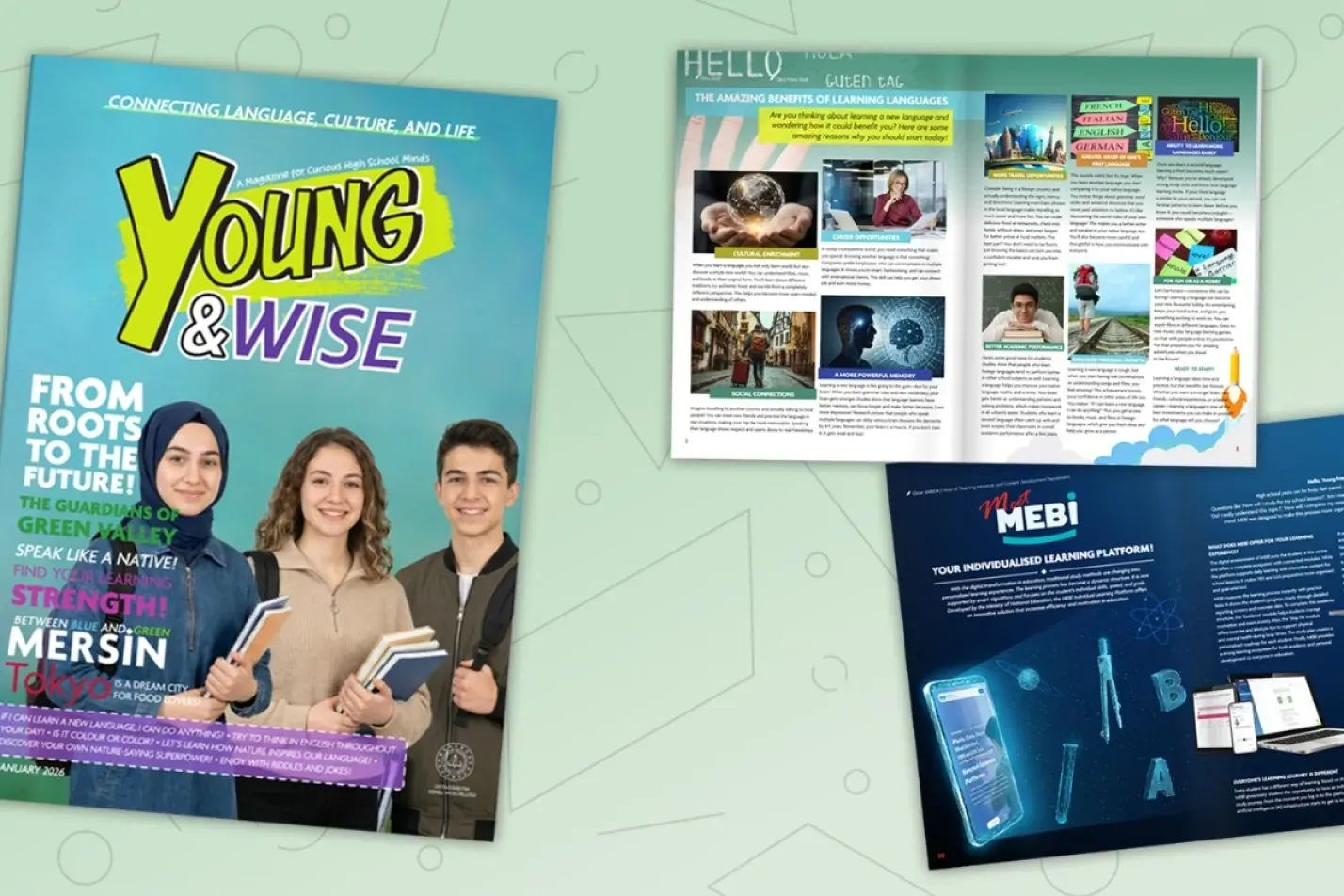 Milli Eğitim Bakanlığınca ortaöğretim öğrencilerinin dil becerilerini ve okuma kültürlerini desteklemek amacıyla Young and Wise dergisi hazırlandı. Ocak 2026 tarihli ilk sayısı okurlarla buluşan dergi, üç aylık periyotlarla yayımlanacak.