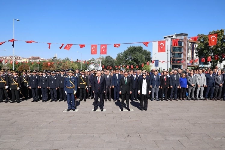 NEVŞEHİR (İGFA) - Nevşehir’de, 30 Ağustos Zafer Bayramı ve Türk Silahlı Kuvvetler Günü kutlama etkinlikleri, Nevşehir Valiliği önündeki Atatürk Anıtına Nevşehir Valisi Ali Fidan, Nevşehir Belediye Başkanı Rasim Arı ve Garnizon Komutanlığı adına Hava Mühendis Albay Hasan Şimşek, Atatürk Anıtına çelenk sunması ile başladı.