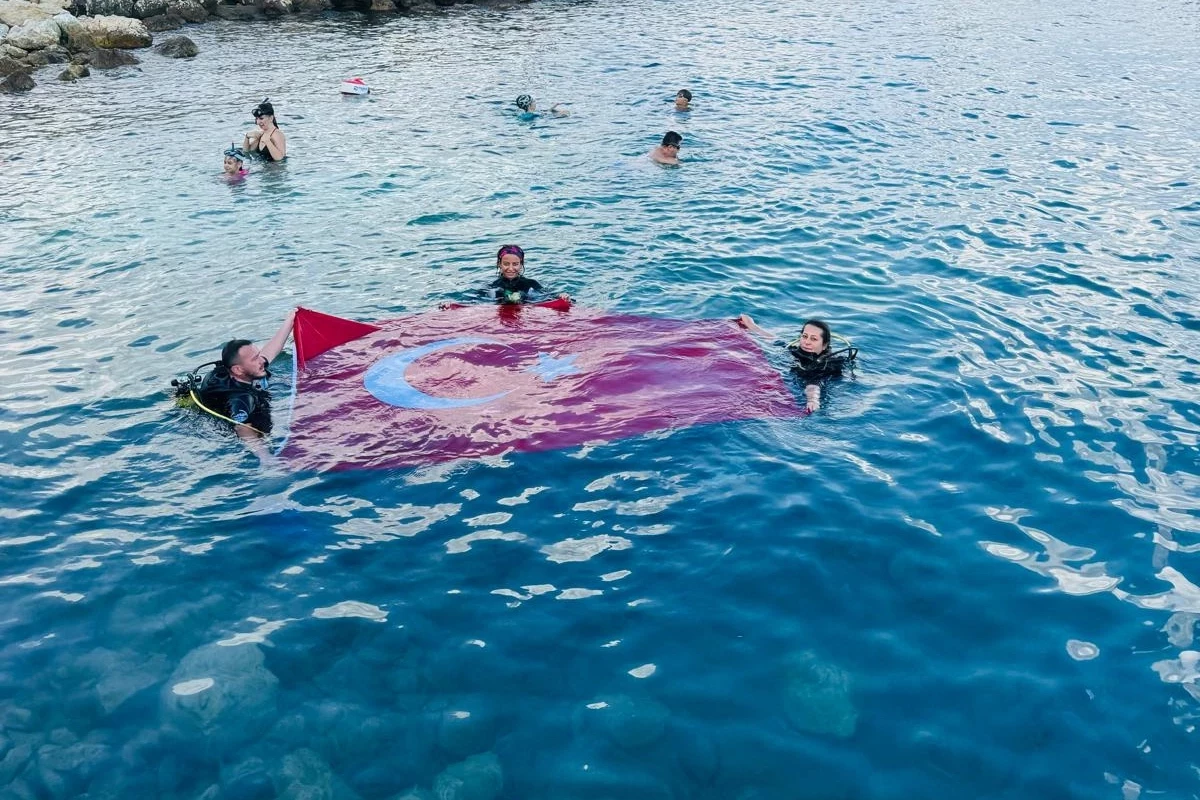 30 Ağustos Zafer Bayramı dolayısıyla dalış yapıp, su altında Türk bayrağı açarak kutladı.